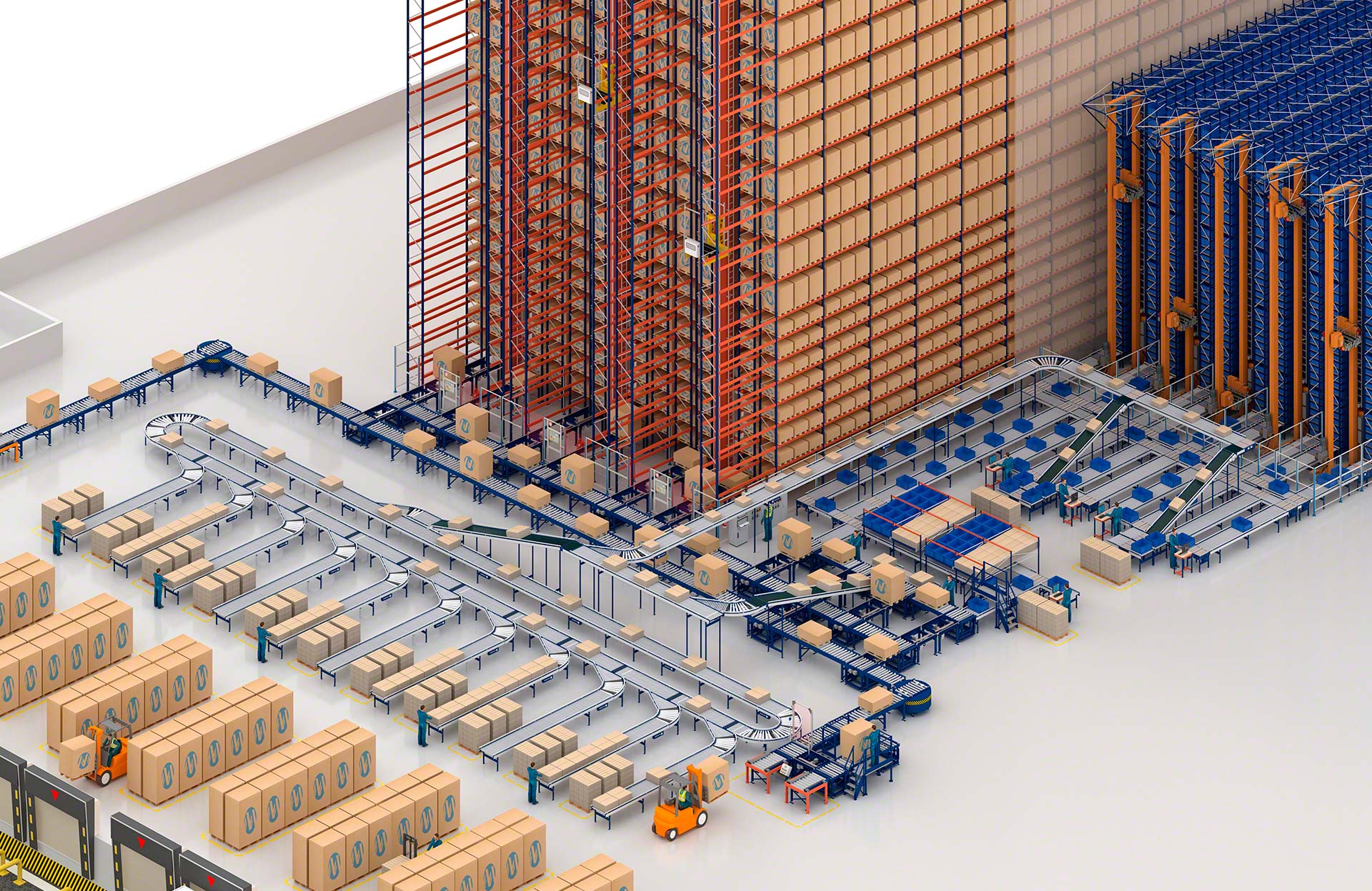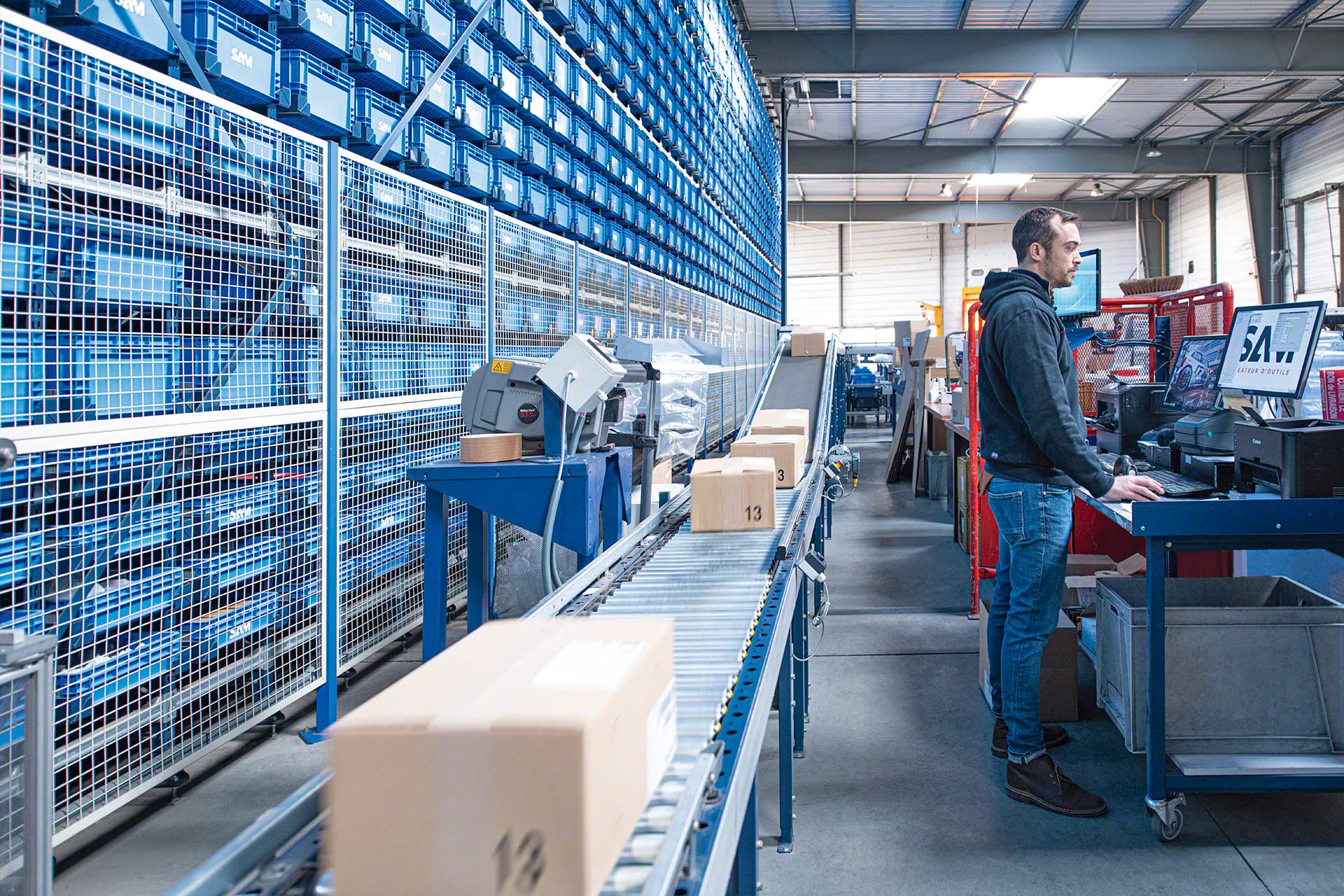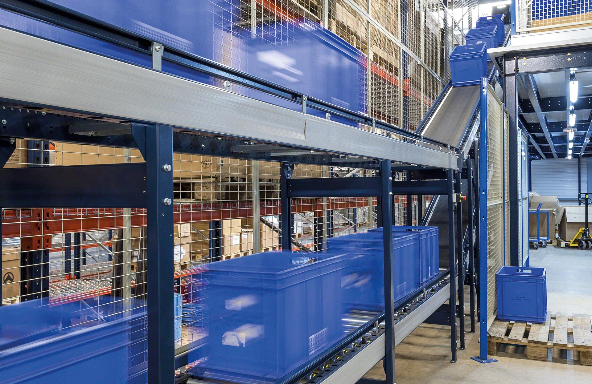 - Ergonoomiline töö: töötajad täidavad oma ülesandeid, näiteks komplekteerivad tellimusi, tänu kastide käitlemise süsteemidele mugavamalt.