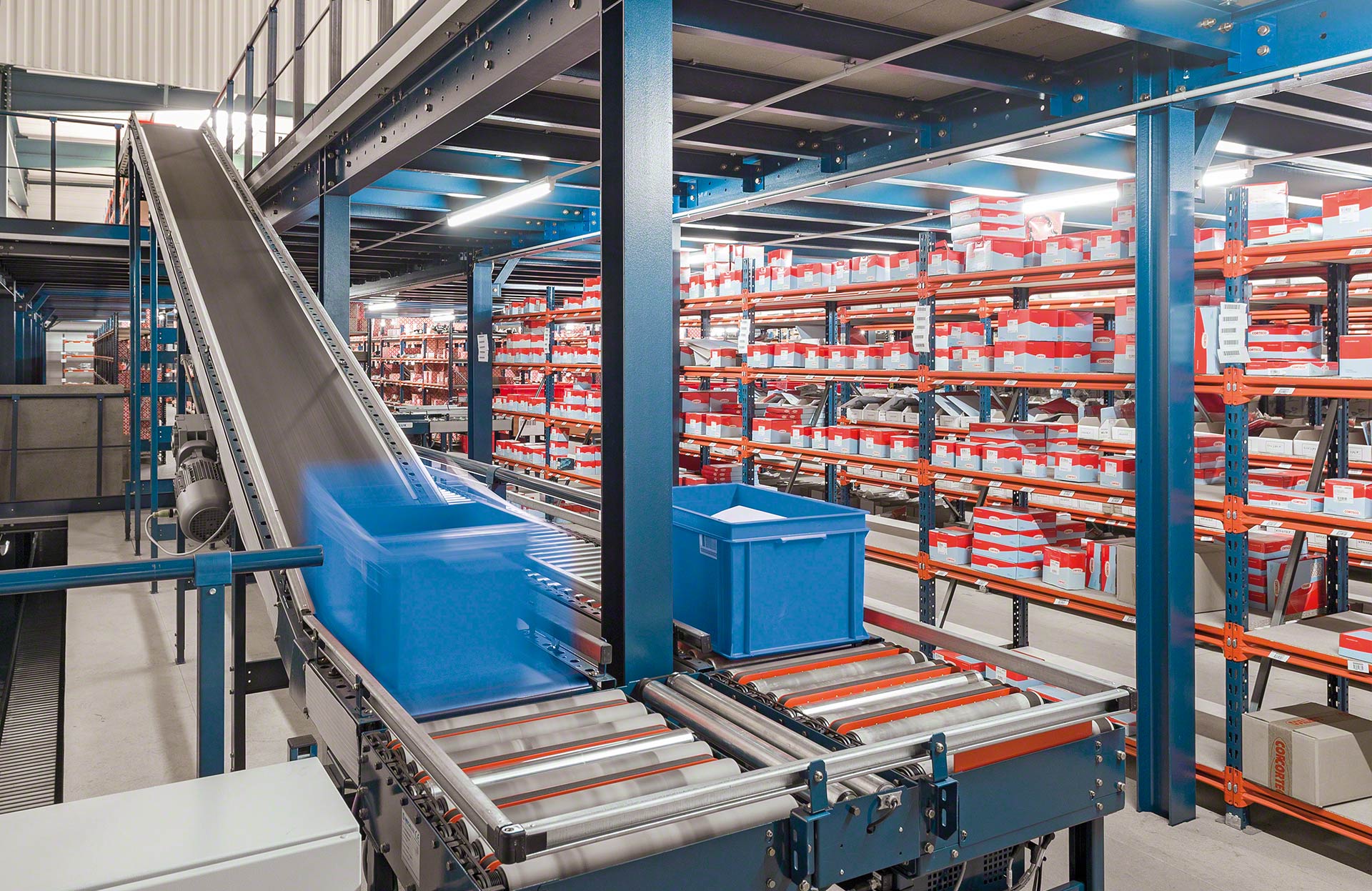 Mecalux pakub mitmesuguseid kastikäsitlemissüsteeme, muu hulgas rull-, rihm-, ja kombineeritud rulli/hammasrihmaga kastide rullkonveiereid. Kastide rullkonveierite puhul liigutatakse kaubaühikuid metallsilindritega, mis pöörlevad teljel ja mida ajab ringi mootor või gravitatsioon. Rihmkonveierid liigutavad kaste ja muid väikesi kaubaühikuid mööda pidevat pinda, mis on valmistatud kummist või plastikust ning mis pöörleb struktuuri otstes asuva kahe motoriseeritud trumli abil. Kombineeritud konveierid – ristülekandeüksused, milles on kombineeritud 90° nurga all olevad rullid ja rihmad, mis muudavad transporditavate kaubaühikute suunda või asetust.