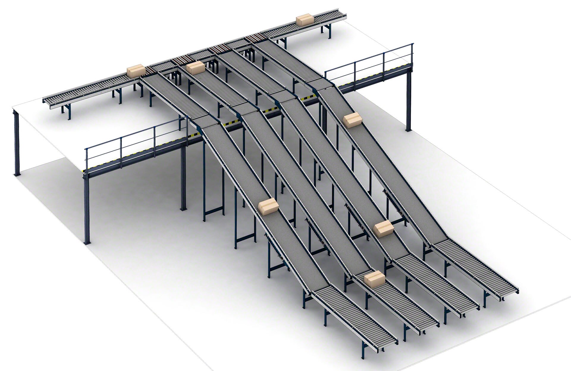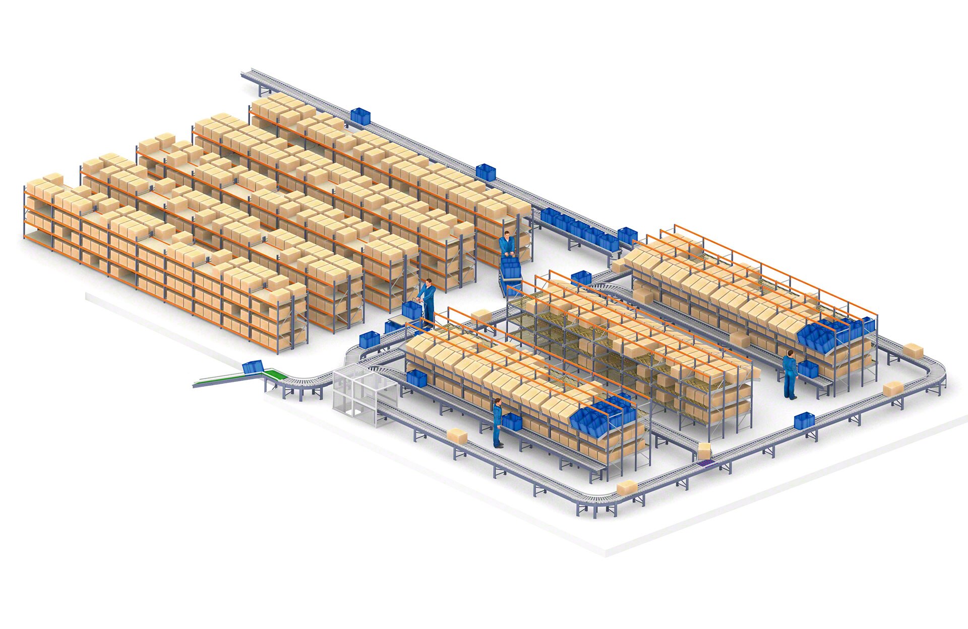 Kastide teisaldamise süsteem võib hõlmata nii rull- kui ka lintkonveiereid. Need masinad muudavad karpide, aluste, kastide ja muude kergete koormate liigutamise ja käsitlemise laos sujuvaks. Standardne konveierikiirus on 25 kuni 60 m/min.