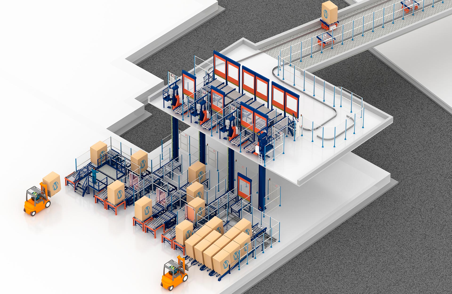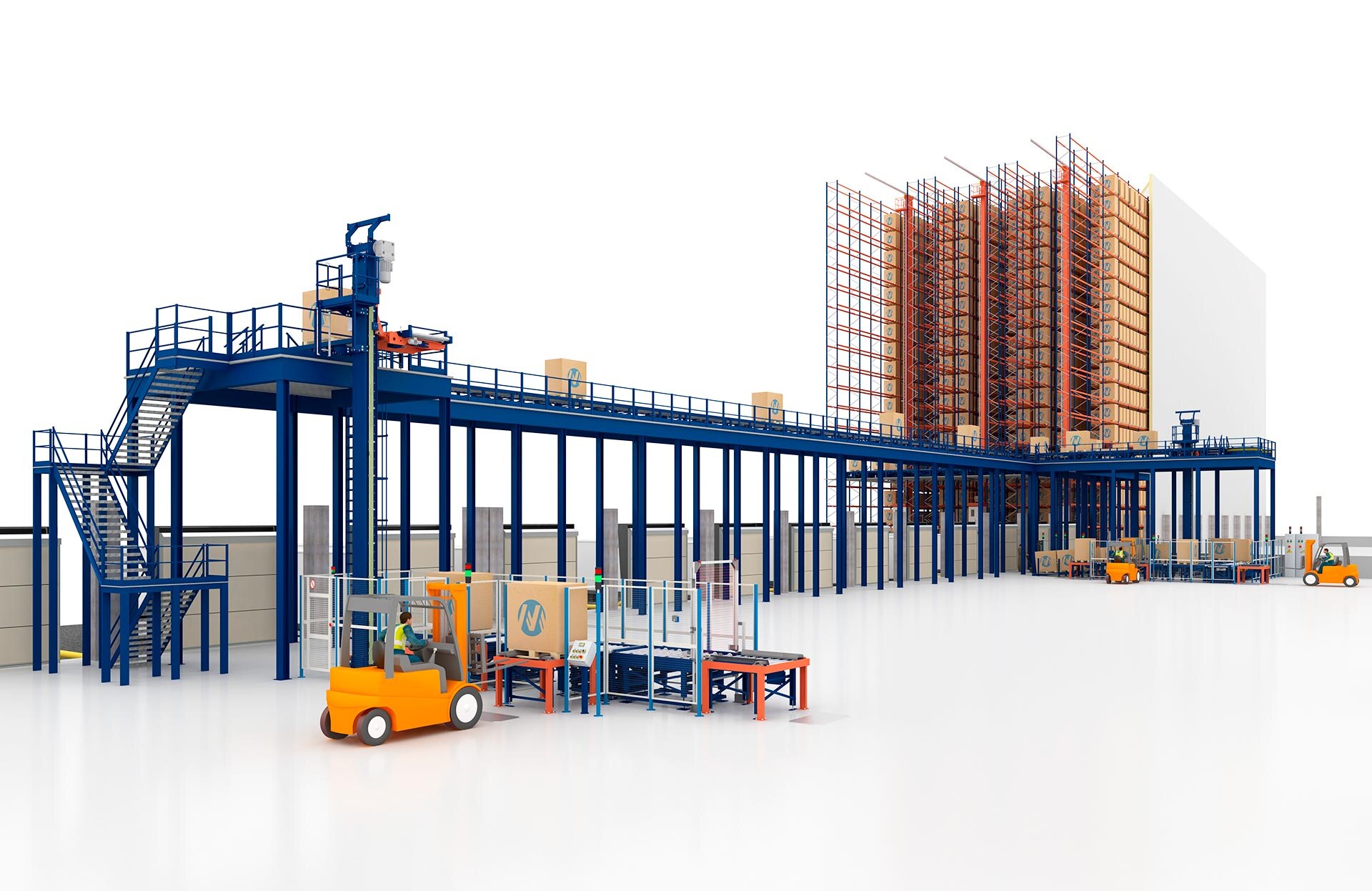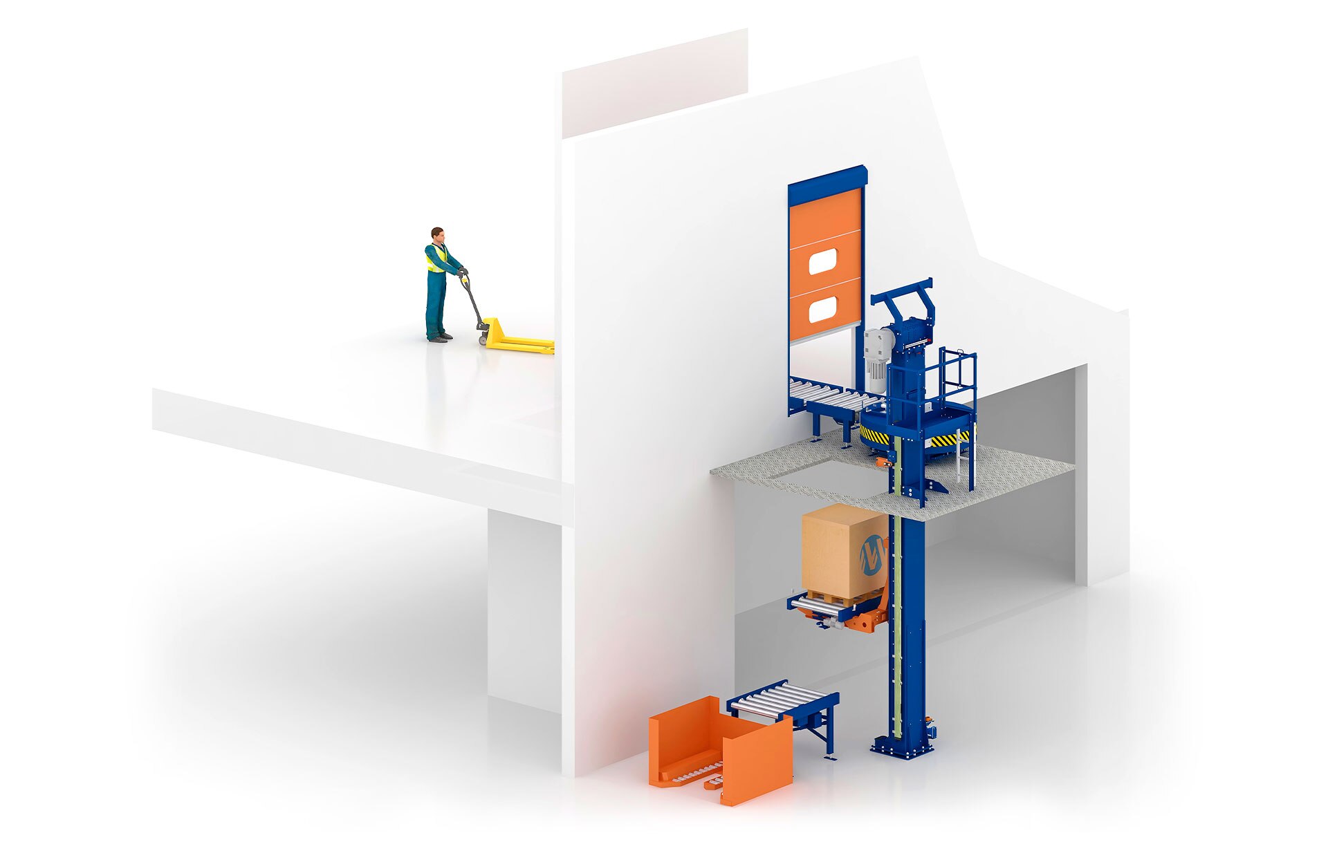Vertikaalne transpordisüsteem, mis automatiseerib kaubaaluste tõstmise ja langetamise, et tulla toime kõrgustega ja muuta kaubavood sujuvamaks.