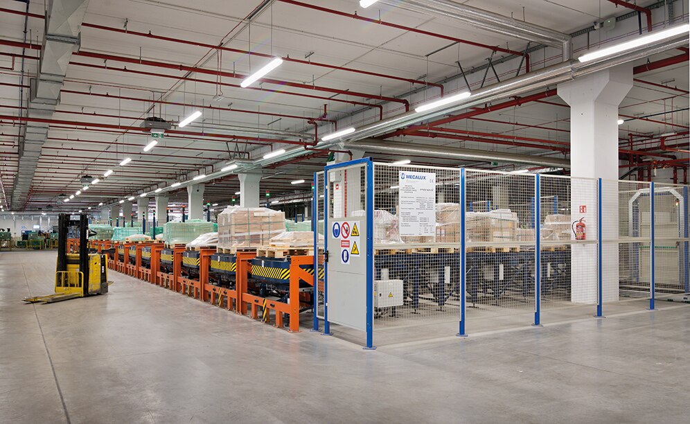 Tootmisest tulevad kaubad sisenevad logistikakeskusesse kõrgendatud dokkide kaudu. Veoautodelt mahalaadimine toimub kahveltõstukite abil, mis lasevad kaubaalustel otse sisendahelasse liikuda.