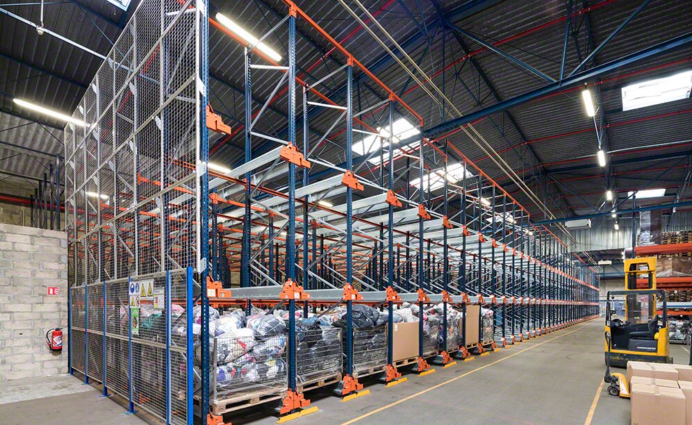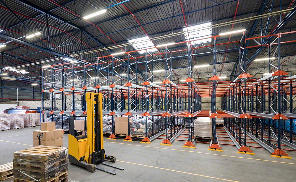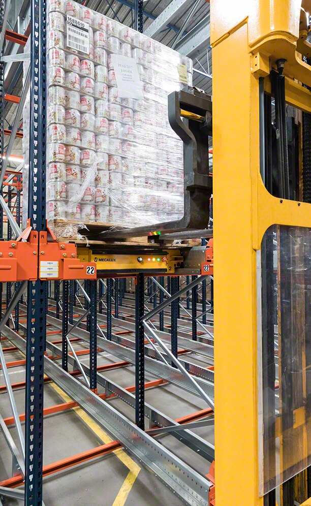 Mecalux varustas lao poolautomaatse süsteemiga suure tihedusega riiulitega. Riiulid on 6,5 m kõrged ja 62 m pikad.