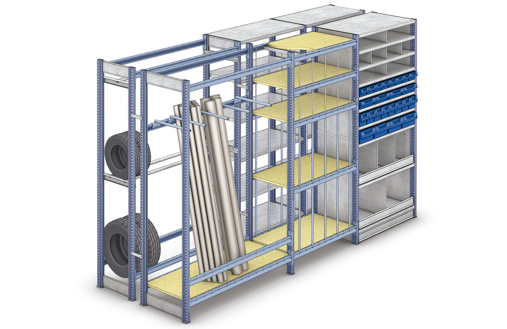 Suures valikus lisatarvikuid, mille abil saab riiulisüsteemi kohandada iga tüüpi kergete ja keskmiste koormate ladustamiseks